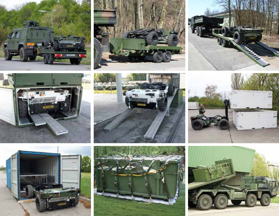 - Lastning og losning i kampzoner uden at udsætte soldater for fare.