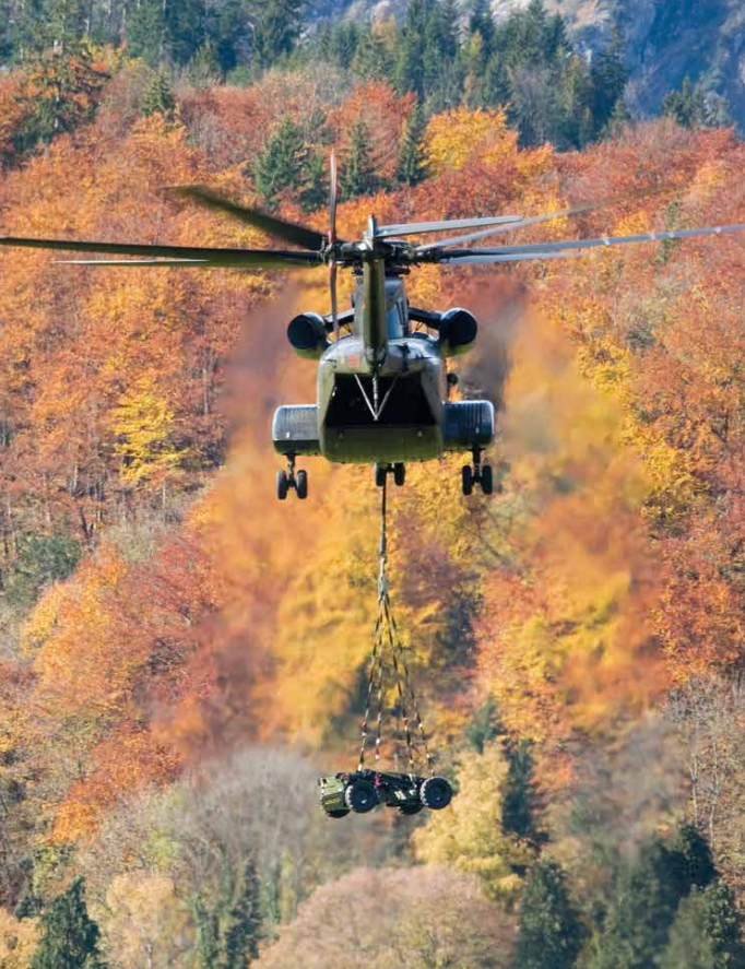 - Transporteres som hængende last under helikoptere (NH90, Blackhawk, Mi8)