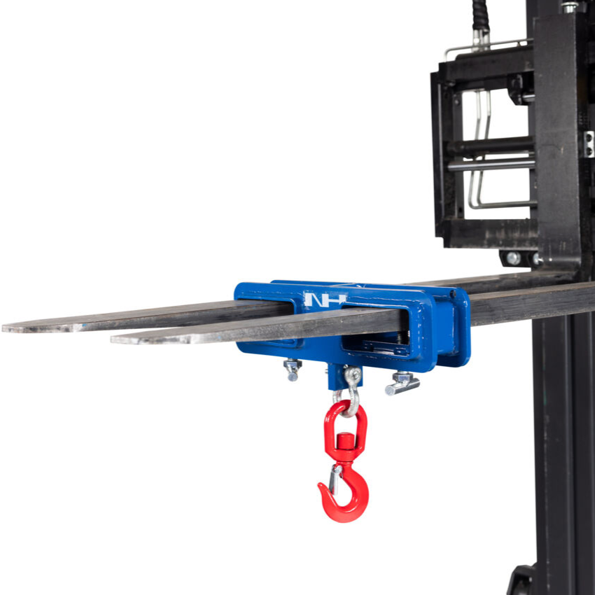 Lav din gaffeltruck om til en mobil kran på få sekunder. Denne justerbare gaffel krog placeres på gaflerne og sikres med spændegreb. Krogen er udstyret med en sikkerhedsklap for ekstra beskyttelse.