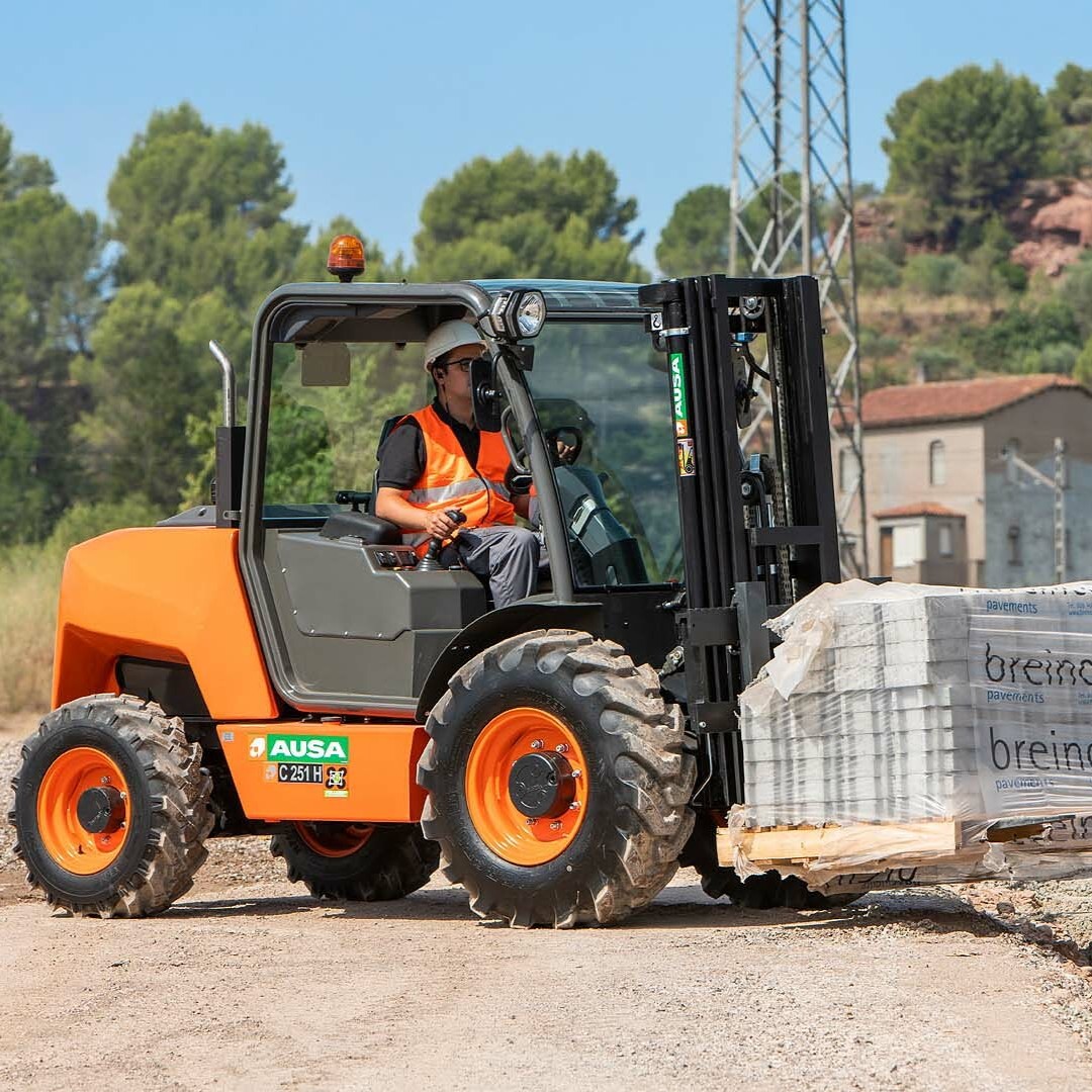 AUSA C251H er en terrængående gaffeltruck designet til krævende håndtering af tunge materialer på både faste og ujævne underlag. Med en løftekapacitet på 2.500 kg kombinerer modellen høj stabilitet, stærk motorydelse og kompakte mål, der gør den særdeles manøvredygtig i trange arbejdsområder. Den robuste opbygning gør trucken ideel til byggeri, industri og udendørs logistik.