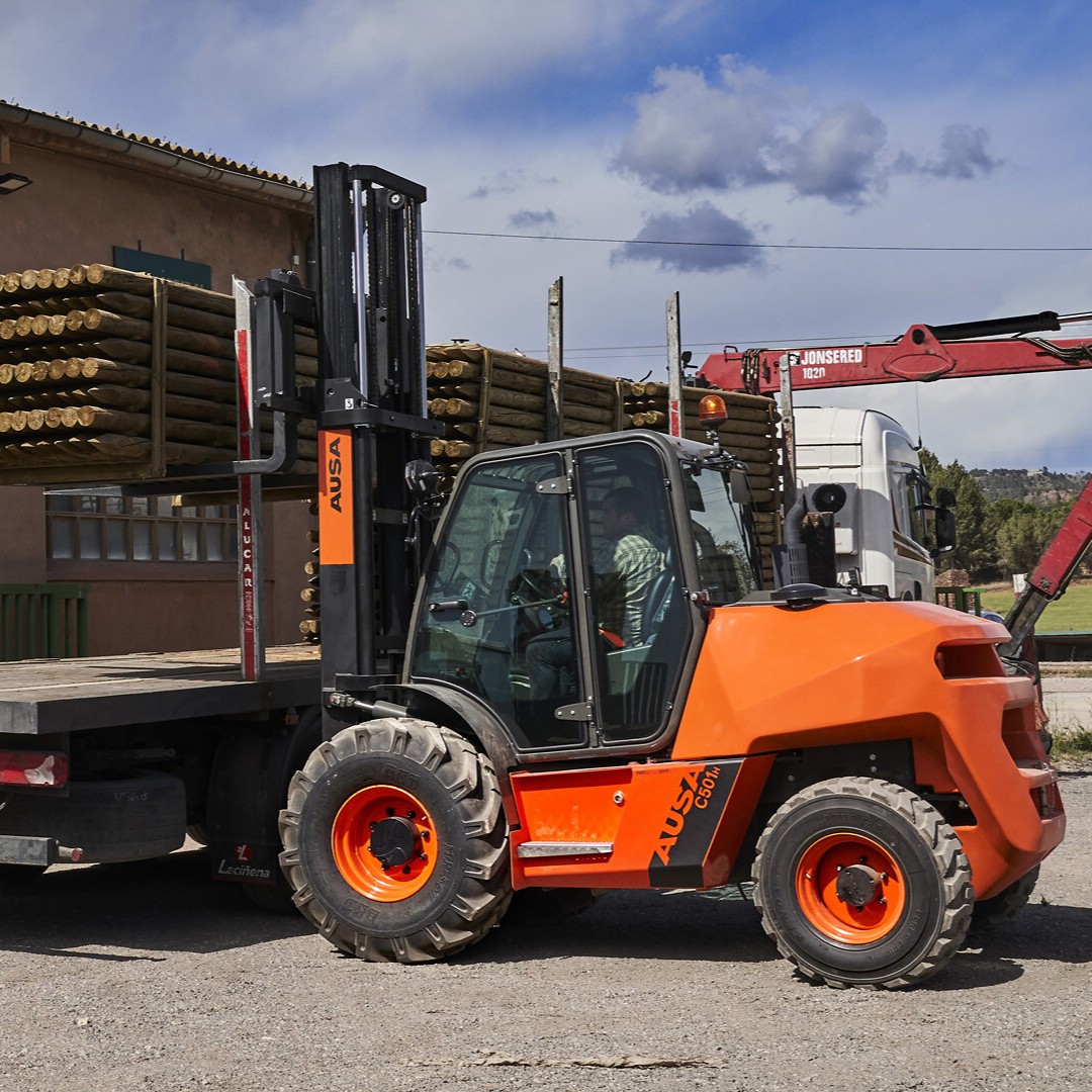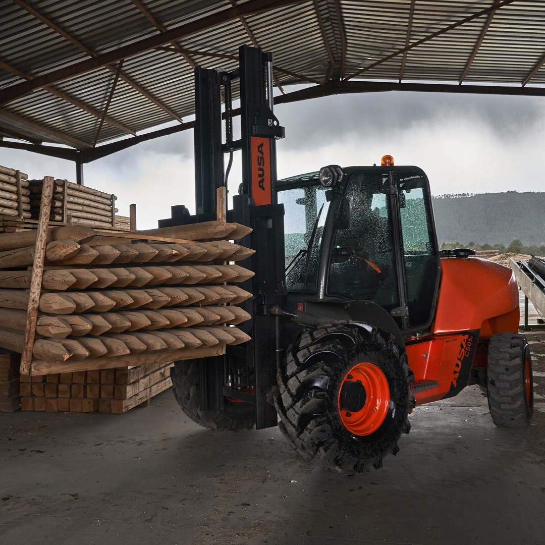 AUSA C501H er en kraftfuld terrængående gaffeltruck udviklet til håndtering af tunge materialer på krævende og ujævne underlag. Med en imponerende løftekapacitet på 5.000 kg kombinerer modellen styrke, høj stabilitet og en robust konstruktion, der gør den ideel til industri, byggeri og udendørs logistik. Den kompakte opbygning sikrer samtidig god manøvredygtighed.
