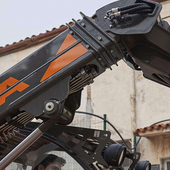 - Funktioner: Terrængående drivlinje, stærk hydraulik og kompakt teleskoparm