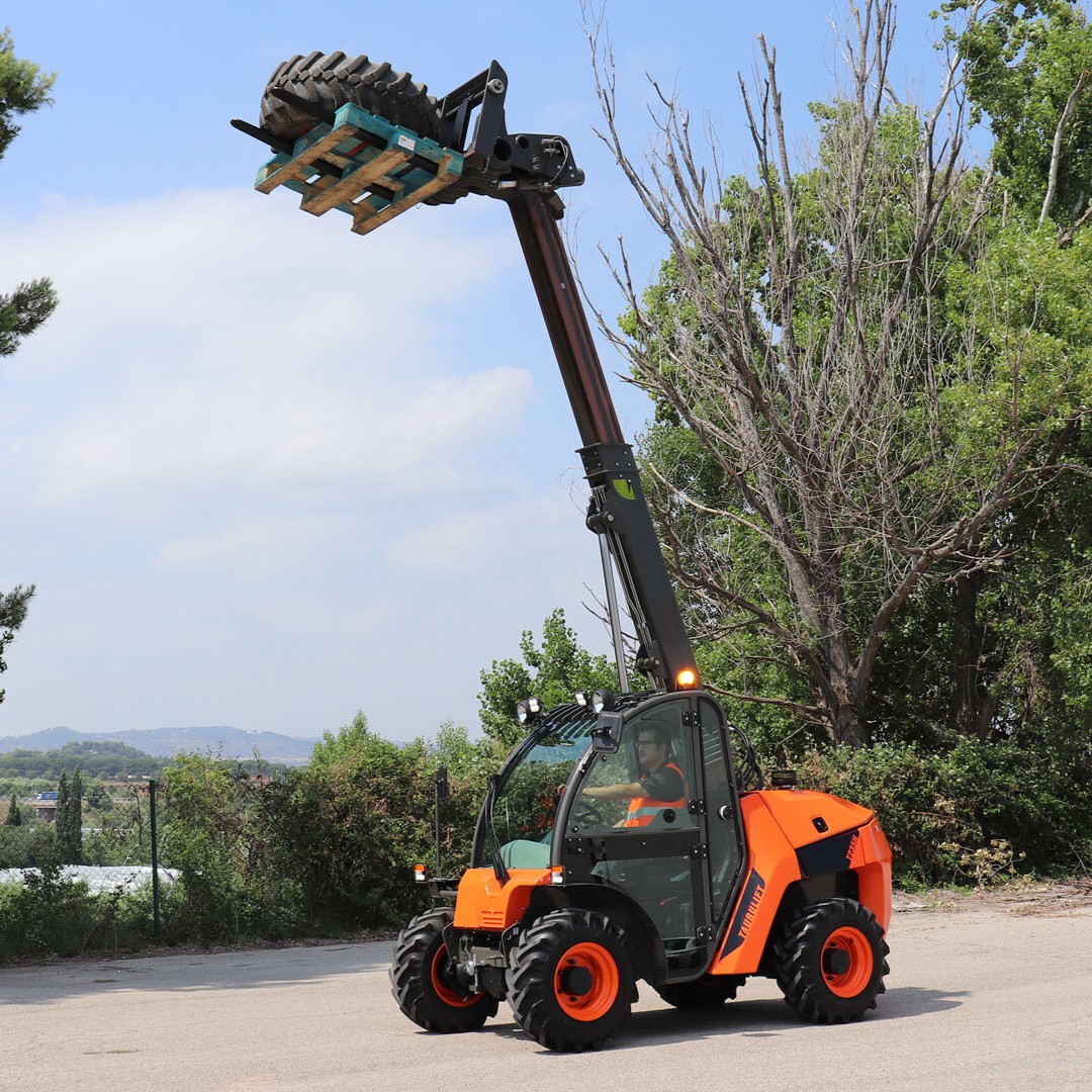 - Funktioner: Terrængående drivlinje, kompakt teleskoparm, stærk hydraulik